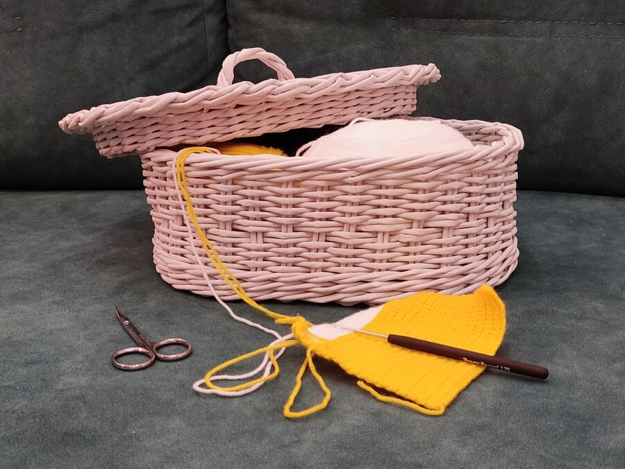 Необходим небольшой опыт в плетении.Размеры: 23×15, высота 10 см