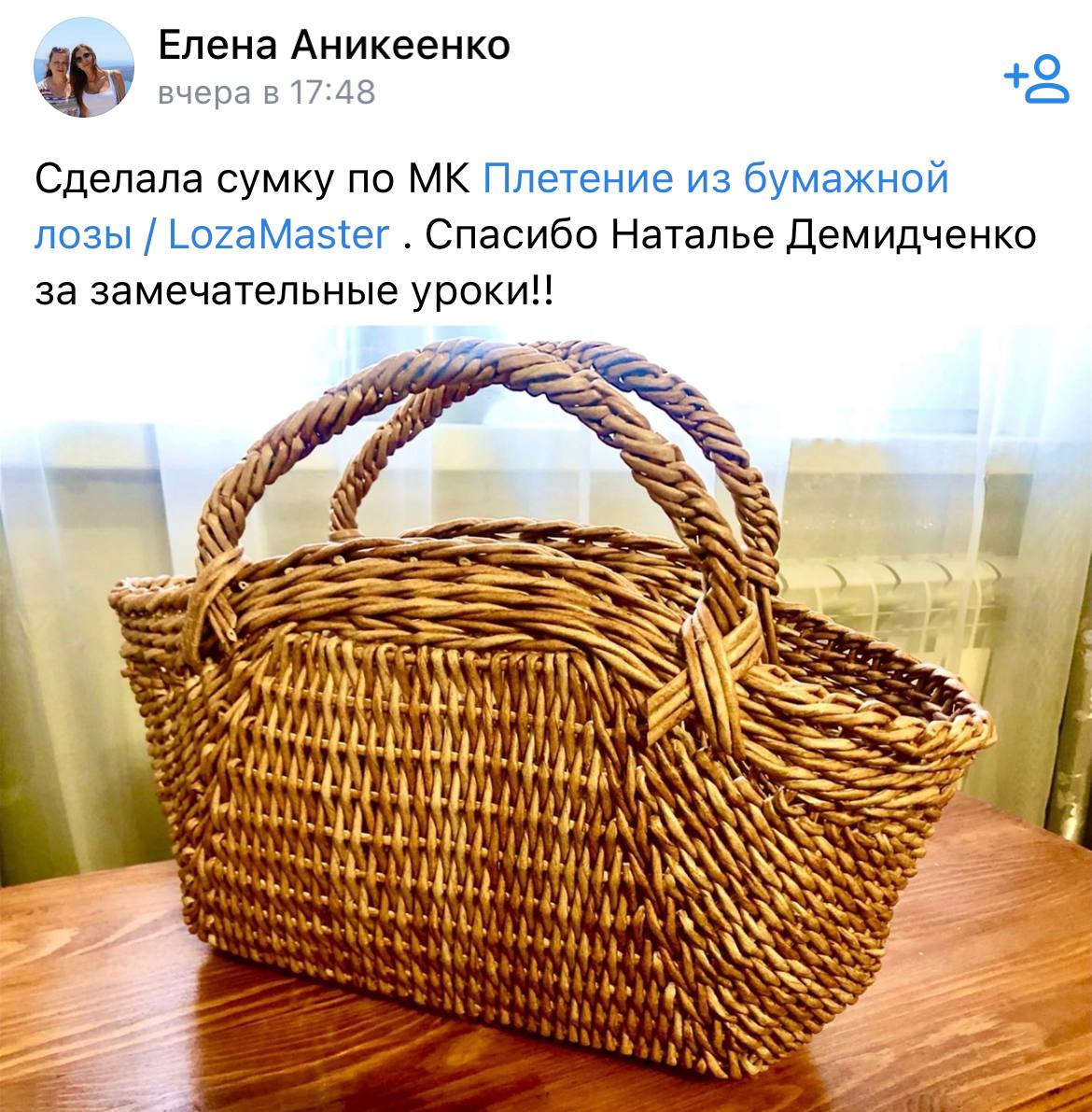 В мастер-классе Наталия показывает, как сочетать плетение из бумажной лозы и аккуратную работу с деревом — легко, понятно и увлекательно.